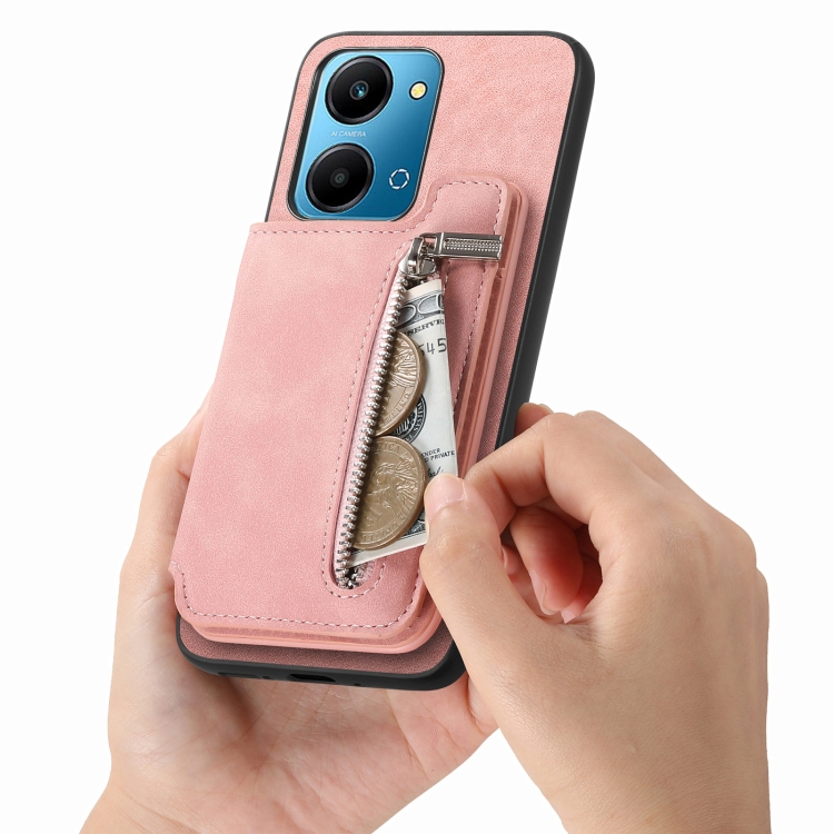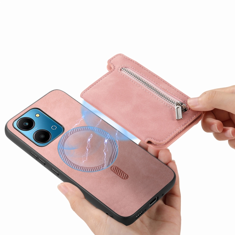 Funda para Teléfono Honor 100 Pro con Cremallera Magsafe y Tarjetero (Rosa)