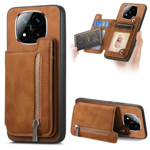 Funda para Teléfono con Cremallera Magsafe Retro para Redmi Note 14 Pro+ 5G (Marrón)