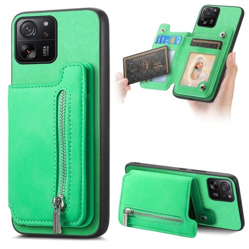Funda para Teléfono con Cremallera Magsafe Retro para Xiaomi 13T/13T Pro (Verde)