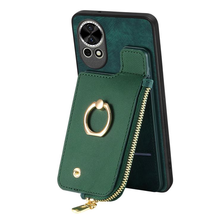 Funda para Teléfono Huawei Nova 8 con Cremallera Vertical y Anillo de Cuero Cruzado (Verde)