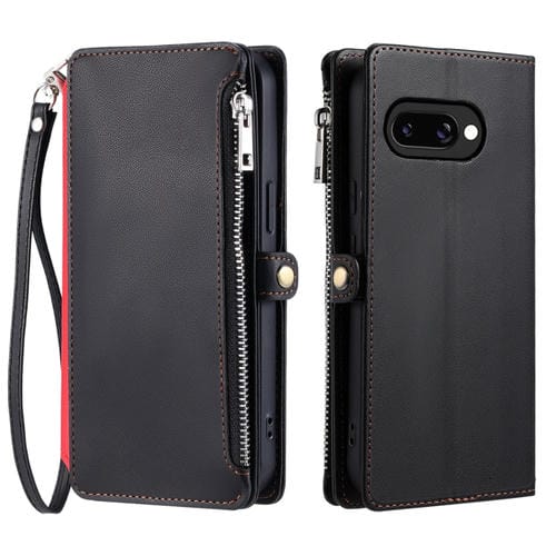 Funda de Cuero con Cremallera y Ranura para Tarjetas para Google Pixel 9A (Negro)