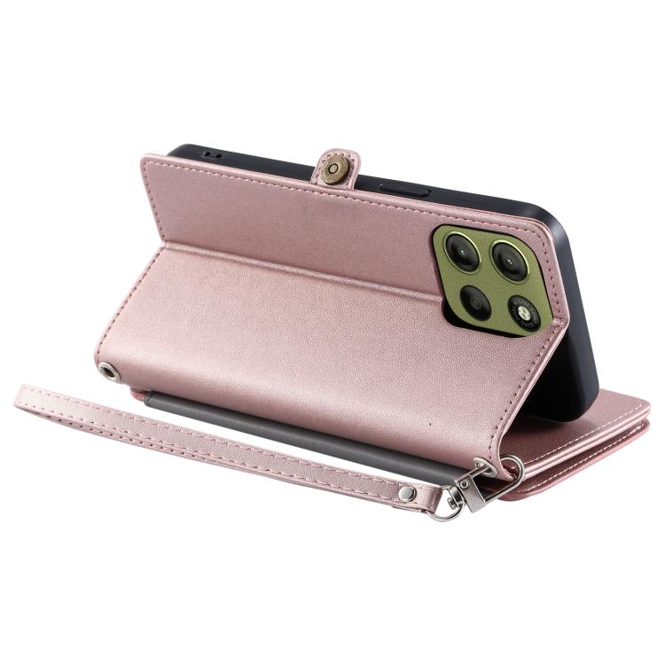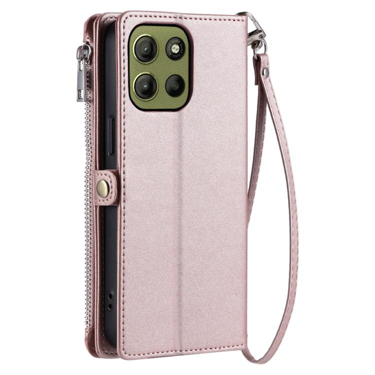 Funda para Teléfono Motorola Moto G15 con Cremallera y Ranura para Tarjetas (Oro Rosa)