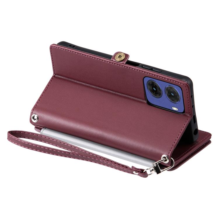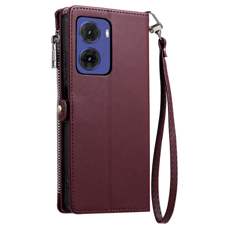 Funda para Teléfono Motorola Moto G05 con Cremallera y Ranura para Tarjetas (Rojo Vino)
