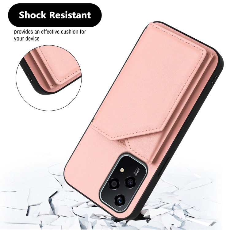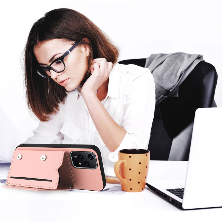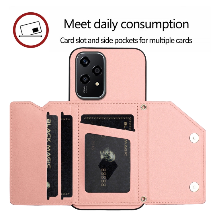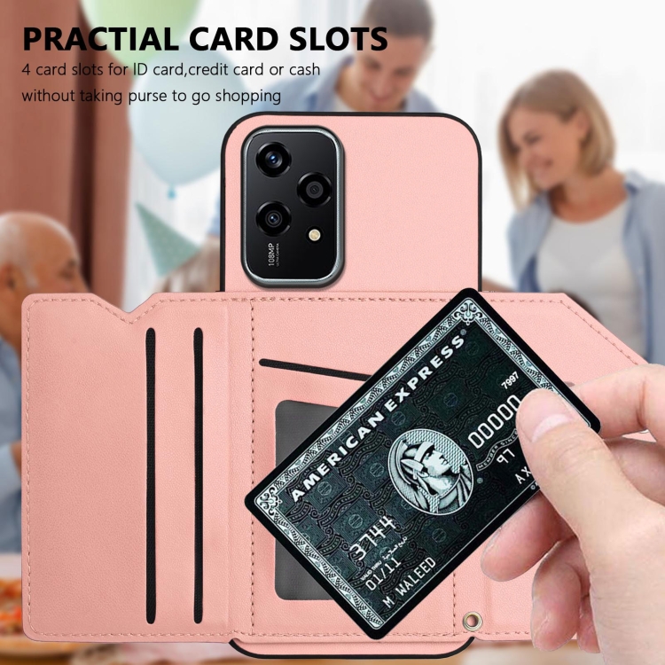 Funda para Honor 200 Lite 5G con 4 Ranuras para Tarjetas y Correa para Muñeca (Rosa)