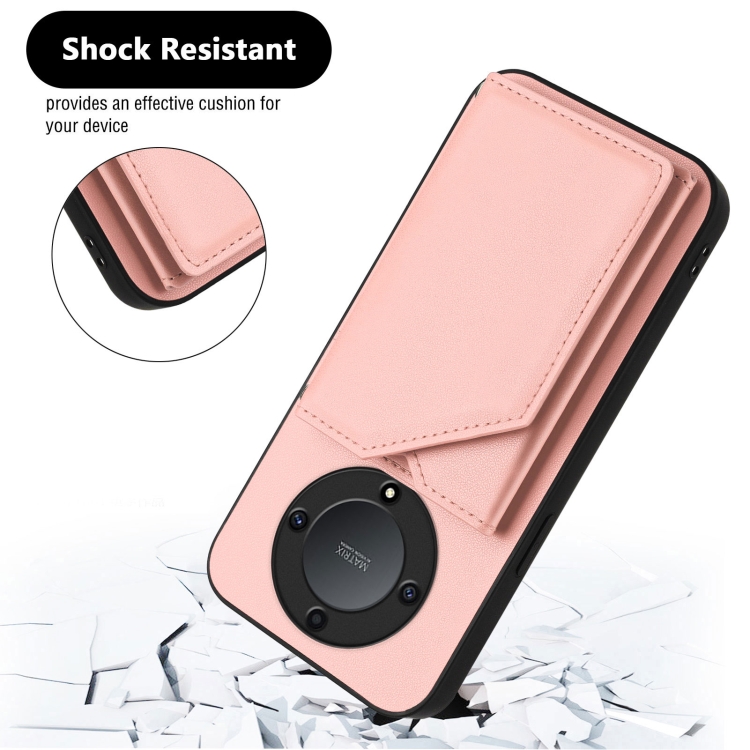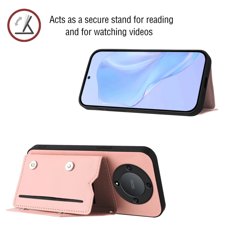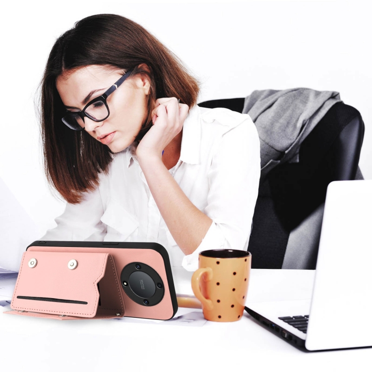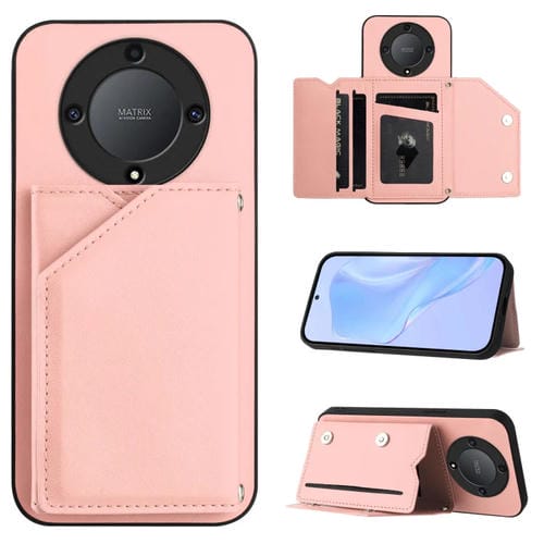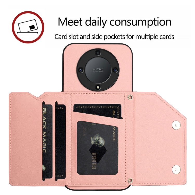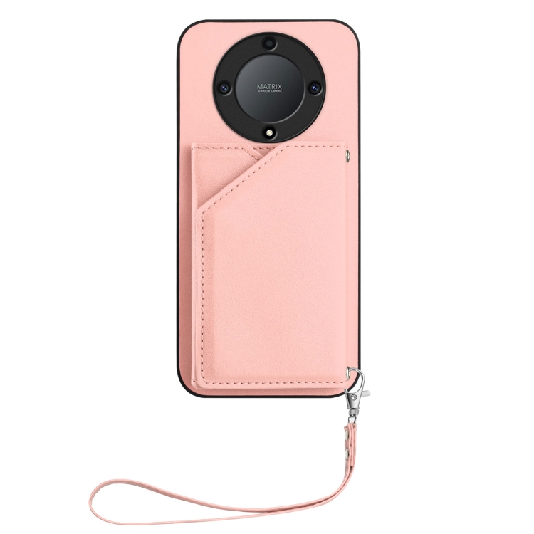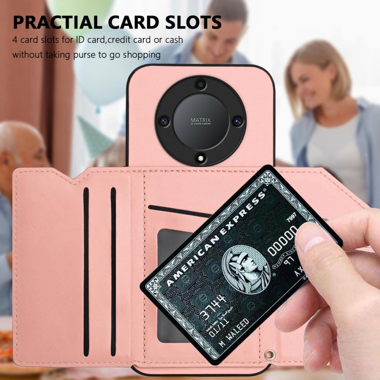Funda para Honor X9A Magic5 Lite con 4 Ranuras para Tarjetas y Correa para Muñeca (Rosa)