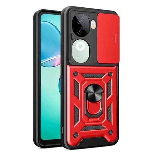 Funda para Teléfono con Diseño de Cubierta Deslizante para Cámara Global para Vivo Iqoo Z9S 5G TPU + PC (Roja)