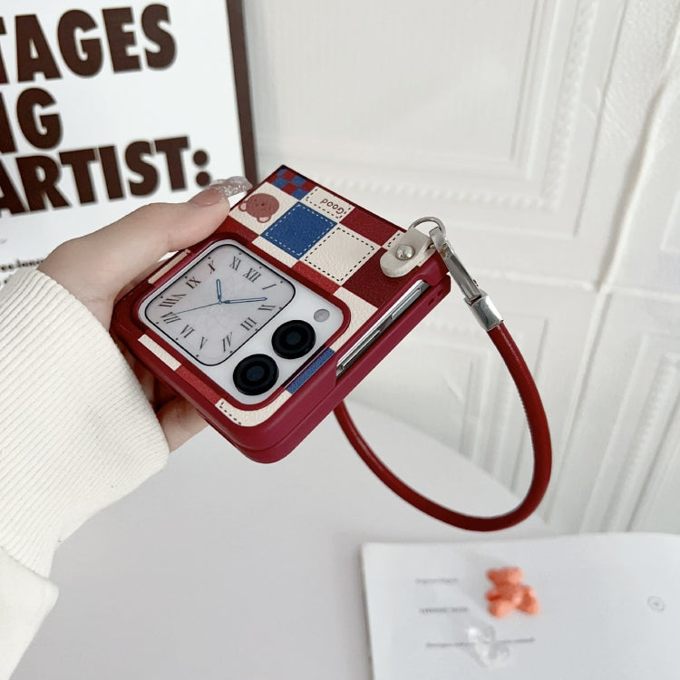 Funda para Huawei Nova Flip con Diseño de Osito Enrejado y Correa para Muñeca (Rojo)