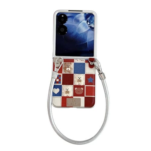 Funda para Teléfono con Diseño de Osito Enrejado y Cobertura Total para Xiaomi Mix Flip con Correa para la Muñeca (Plateada)
