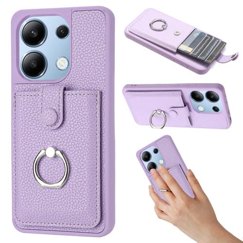 Funda para Teléfono con Diseño de Textura de Lichi para Redmi Note 13 4G, con Soporte para Anillo y Diseño de Tarjeta (Morado)