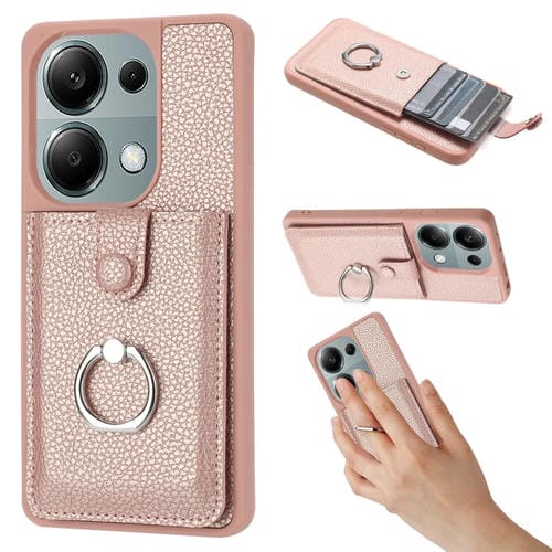 Funda para Teléfono con Diseño de Textura de Lichi para Redmi Note 13 Pro 4G, con Soporte para Anillo y Diseño de Tarjeta (Oro Rosa)