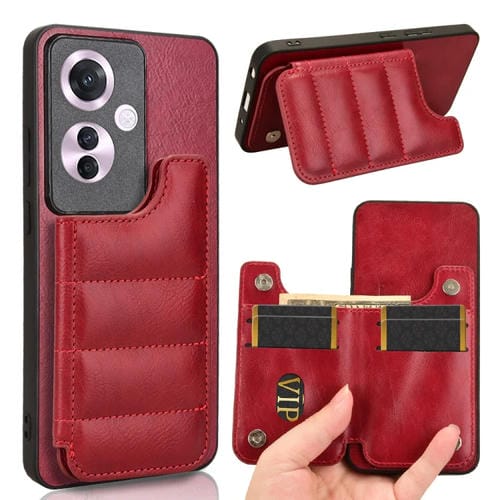 Funda para Teléfono con Diseño de Vaca y Tarjeta de Costura para Oppo Reno11 A, Versión Japonesa (Roja)