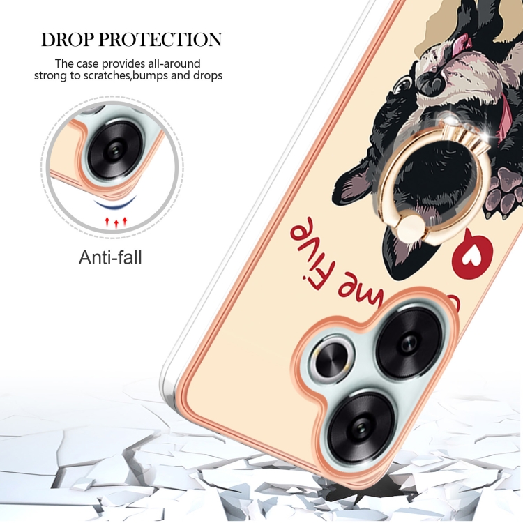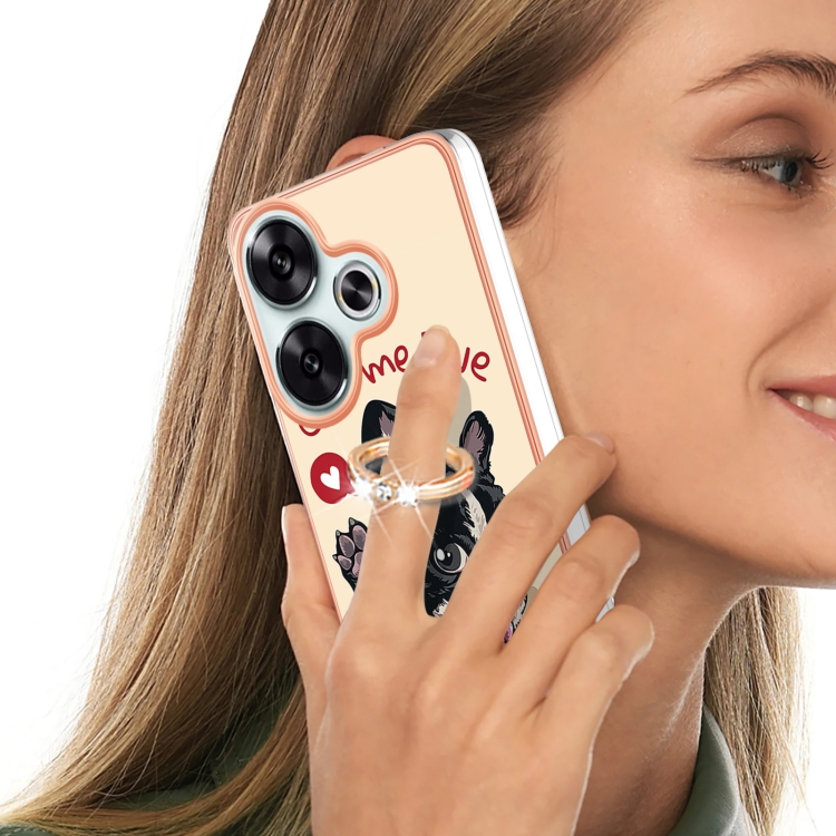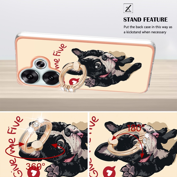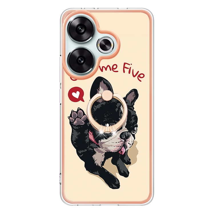 Funda para Teléfono con Galvanoplastia Imd de Doble Cara para Xiaomi Poco F6 5G con Soporte para Anillo (Perro de la Suerte)