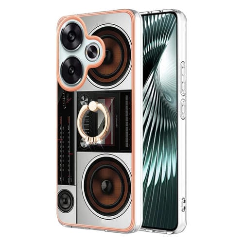 Funda para Teléfono con Galvanoplastia Imd de Doble Cara para Xiaomi Poco F6 5G con Soporte para Anillo (Radio Retro)