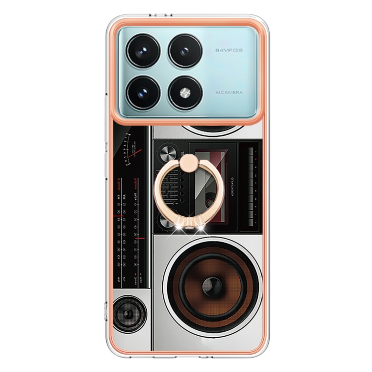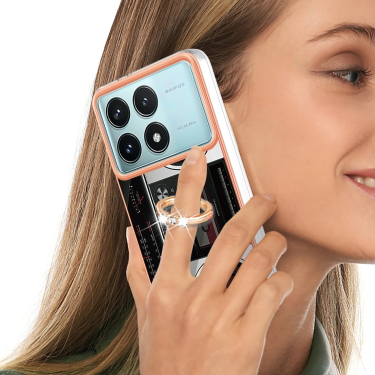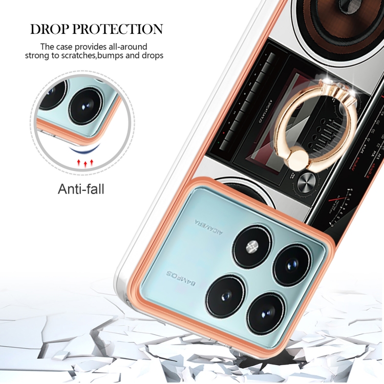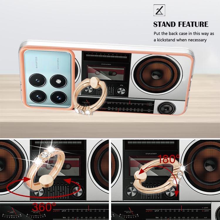 Funda para Teléfono con Galvanoplastia Imd de Doble Cara para Xiaomi Poco F6 Pro 5G con Soporte para Anillo (Radio Retro)