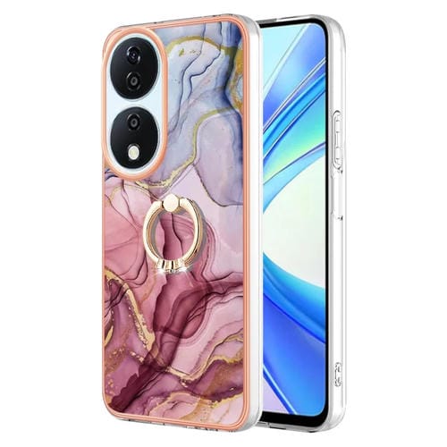 Funda para Teléfono Honor X7B 4G/5G con IMD Doble Cara, Galvanoplastia Mármol y Anillo (Rojo Rosa)