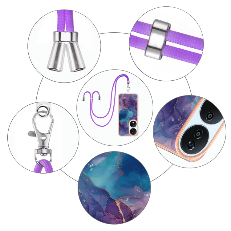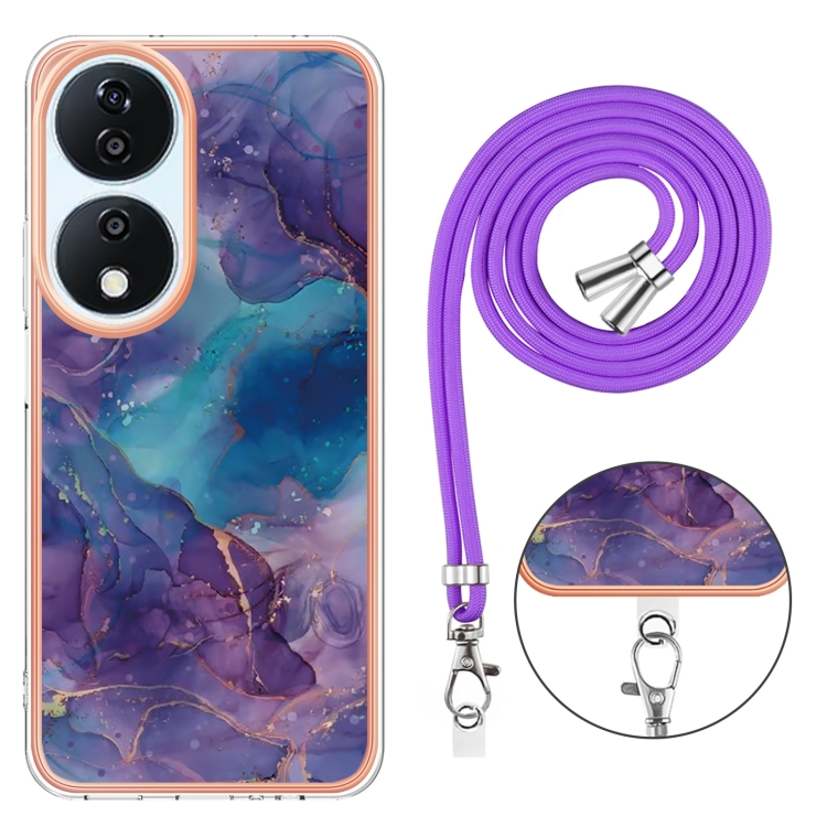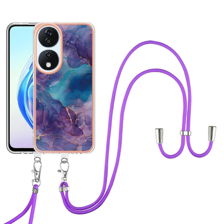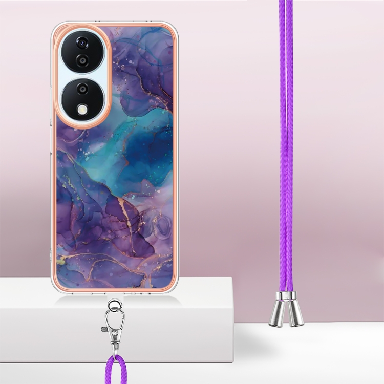 Funda para Honor X7B 4G/5G con Imd Doble Cara y Revestimiento Mármol Galvanizado con Cordón (Morado)