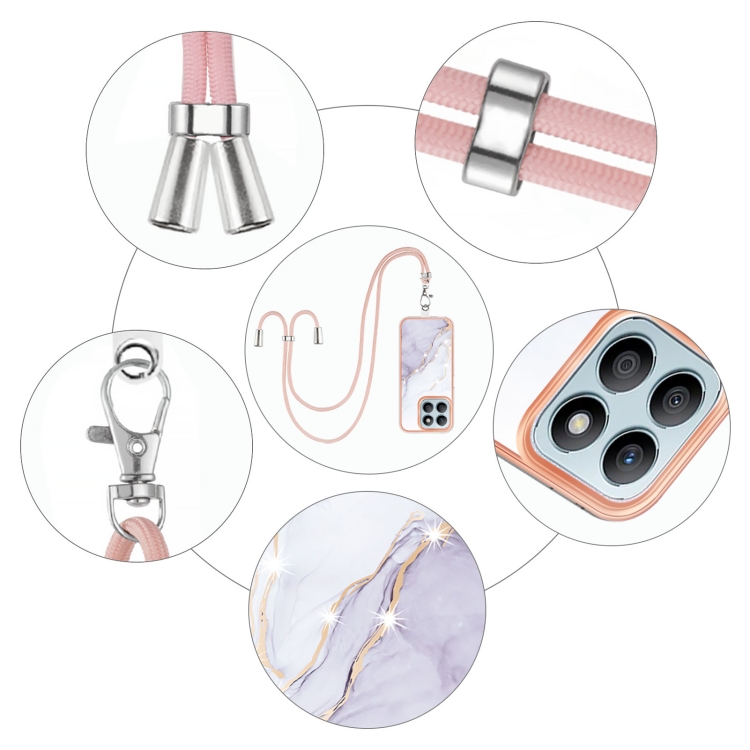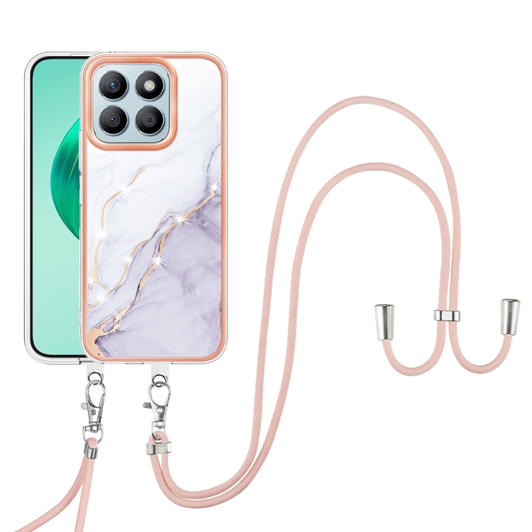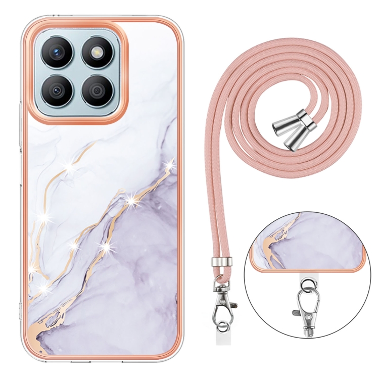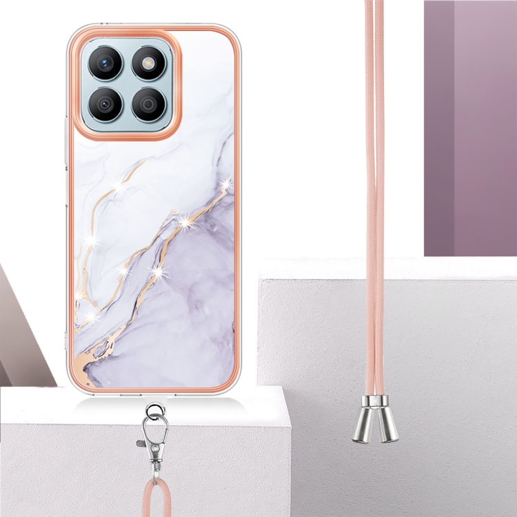 Funda para Teléfono Honor X8B con Imd Doble Cara y Revestimiento Mármol Galvanizado con Cordón (Blanco)