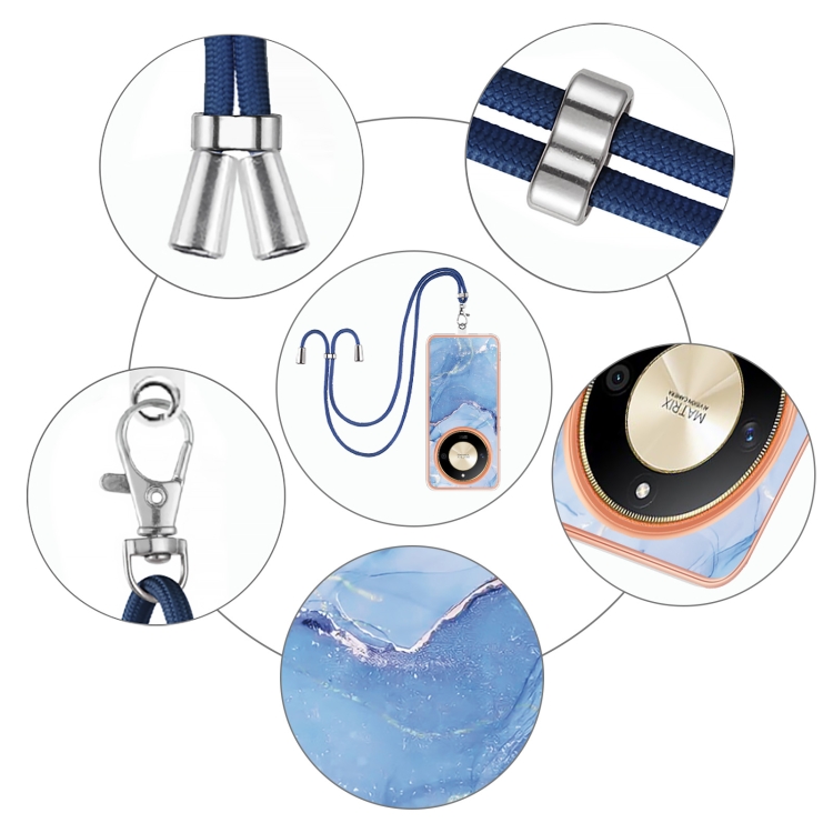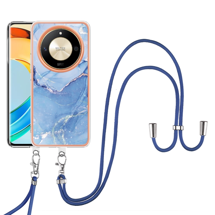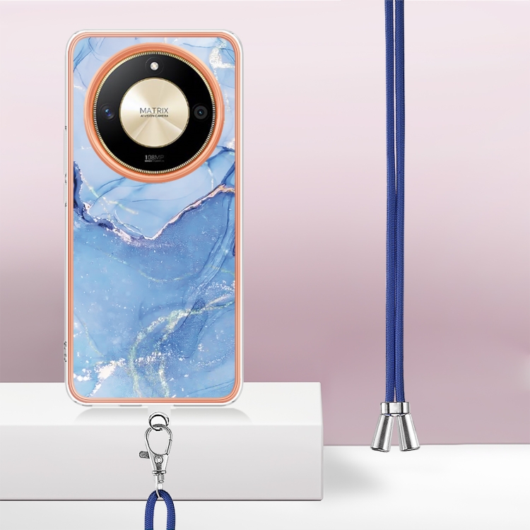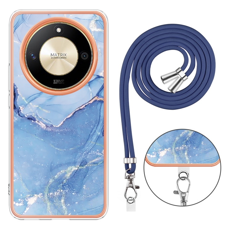 Funda para Teléfono Honor X9B con Imd Doble Cara y Revestimiento Mármol Galvanizado con Cordón (Azul)