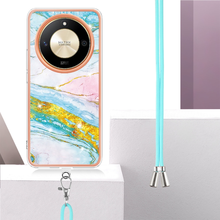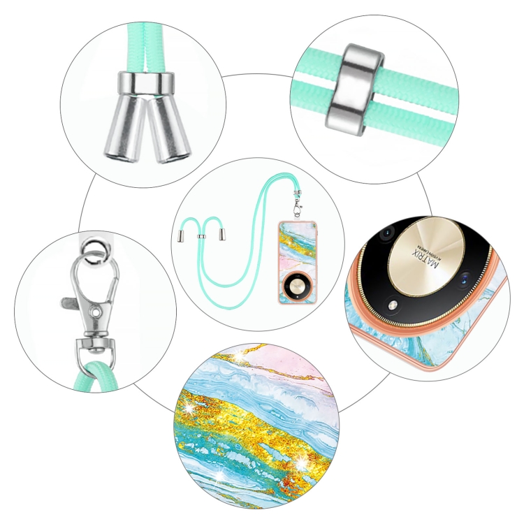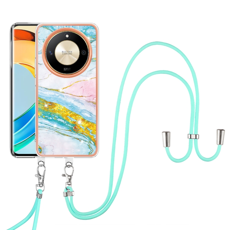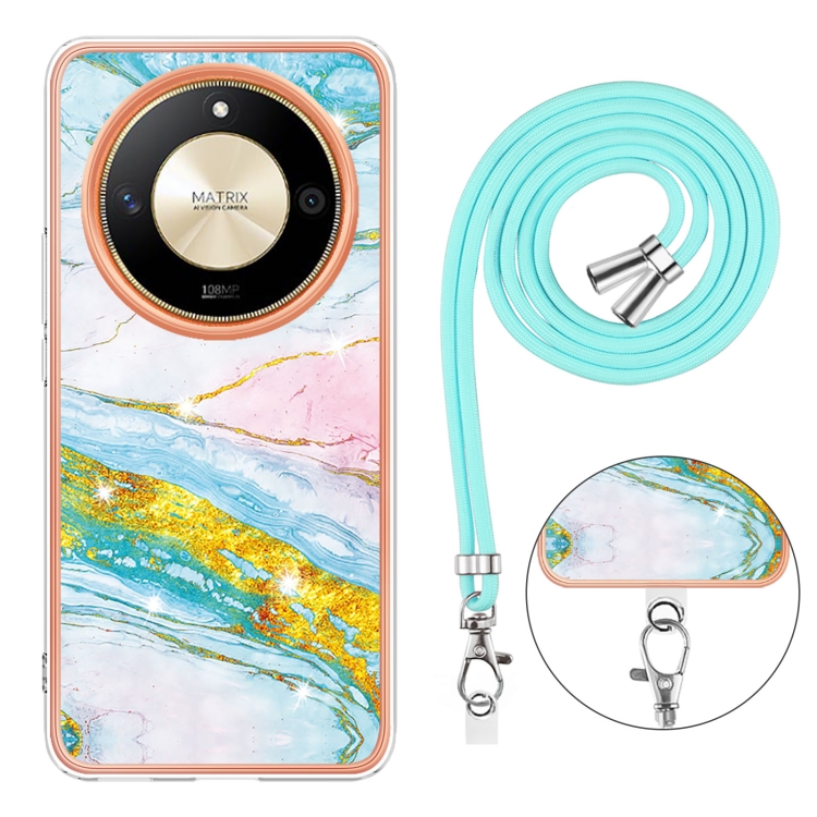 Funda para Teléfono Honor X9B con Imd Doble Cara y Revestimiento Mármol Galvanizado con Cordón (Verde)