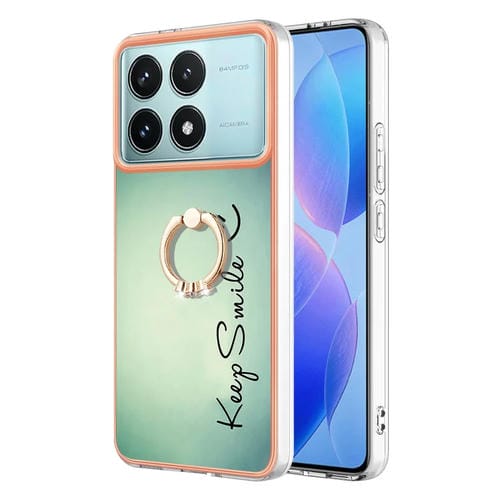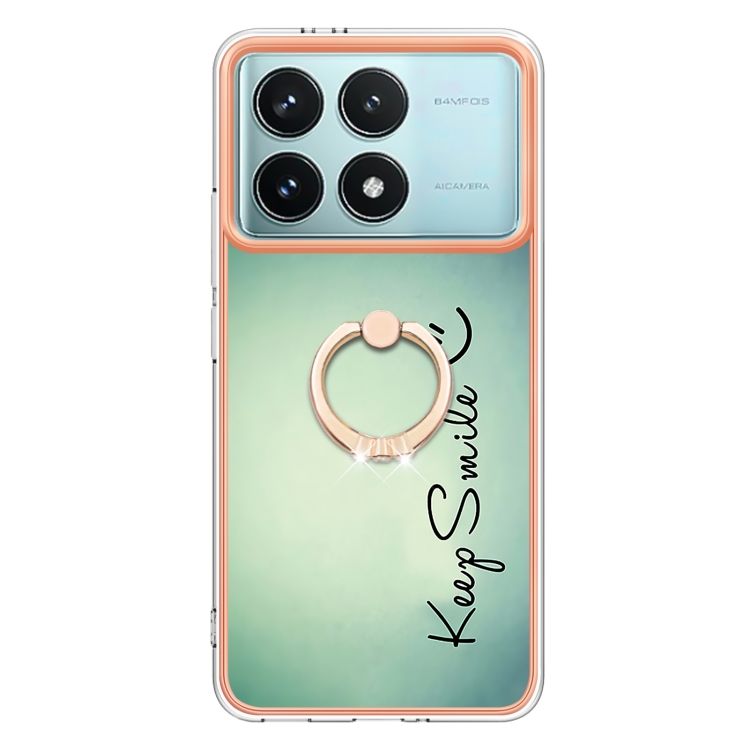 Funda para Teléfono con Imd de Doble Cara Galvanizada con Soporte para Anillo para Xiaomi Poco F6 Pro 5G (Sonrisa)