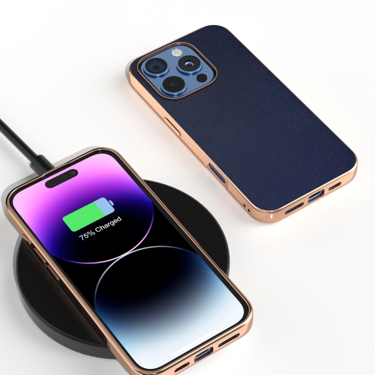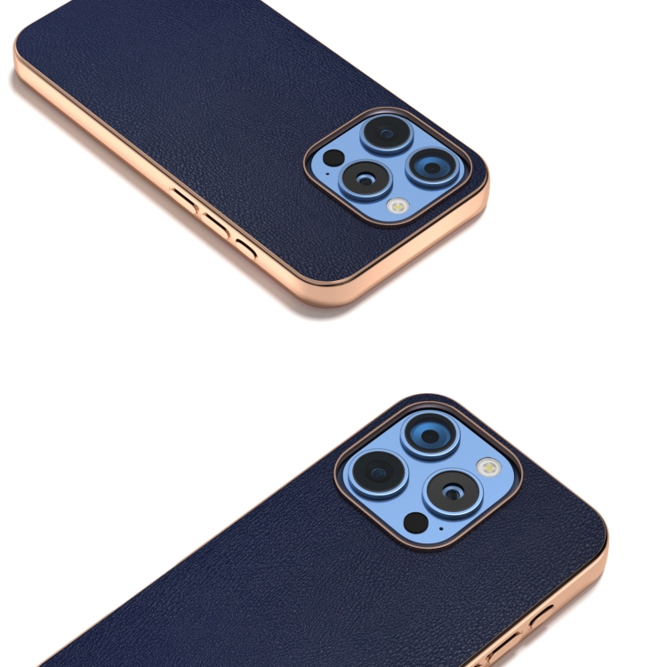 Funda para Teléfono iPhone 16 Pro Max Marco Galvanizado Cuero Sintético Cobertura Total (Azul Oscuro)