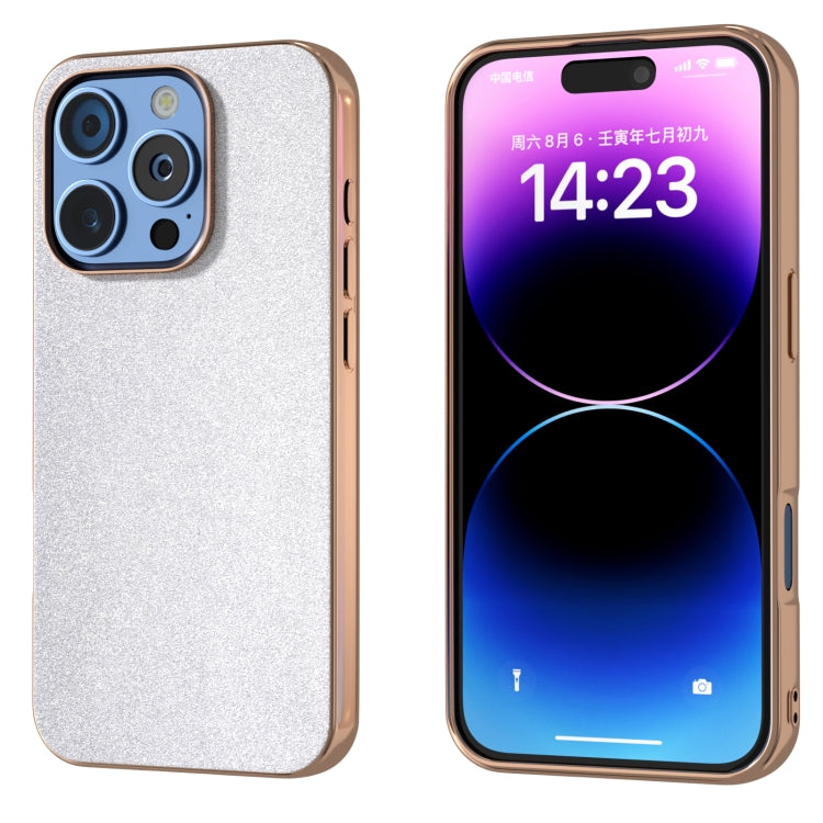 Funda para Teléfono iPhone 16 Pro Max Marco Galvanizado Purpurina Plateada