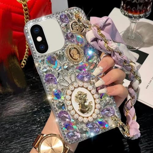 Funda para Teléfono con PC y Pulsera de Piedras Preciosas Moradas y Diamantes para iPhone X/Xs (Blanca)