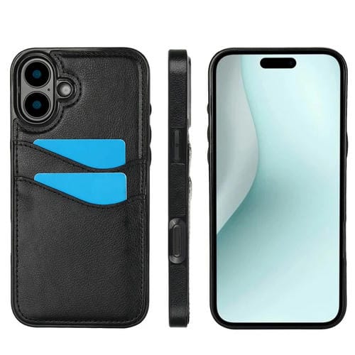 Funda para Teléfono Piel de Lichi iPhone 16 Plus con Ranuras para Tarjetas (Negra)