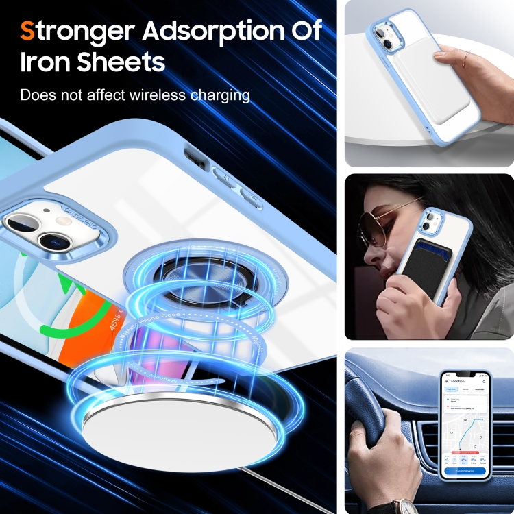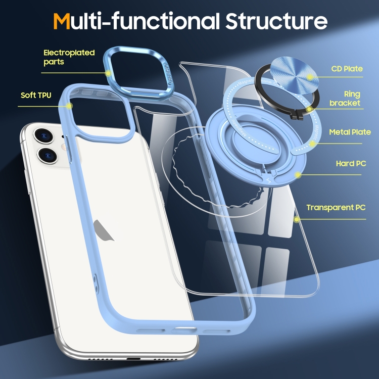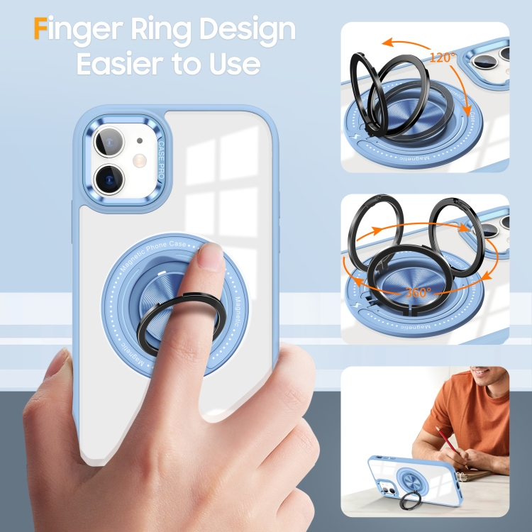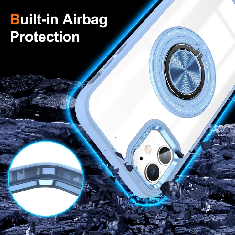 Funda para Teléfono iPhone 12 Soporte Anillo Giratorio Magnético (Azul Claro)