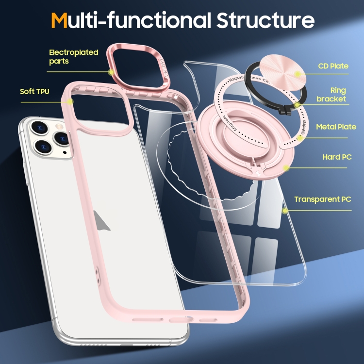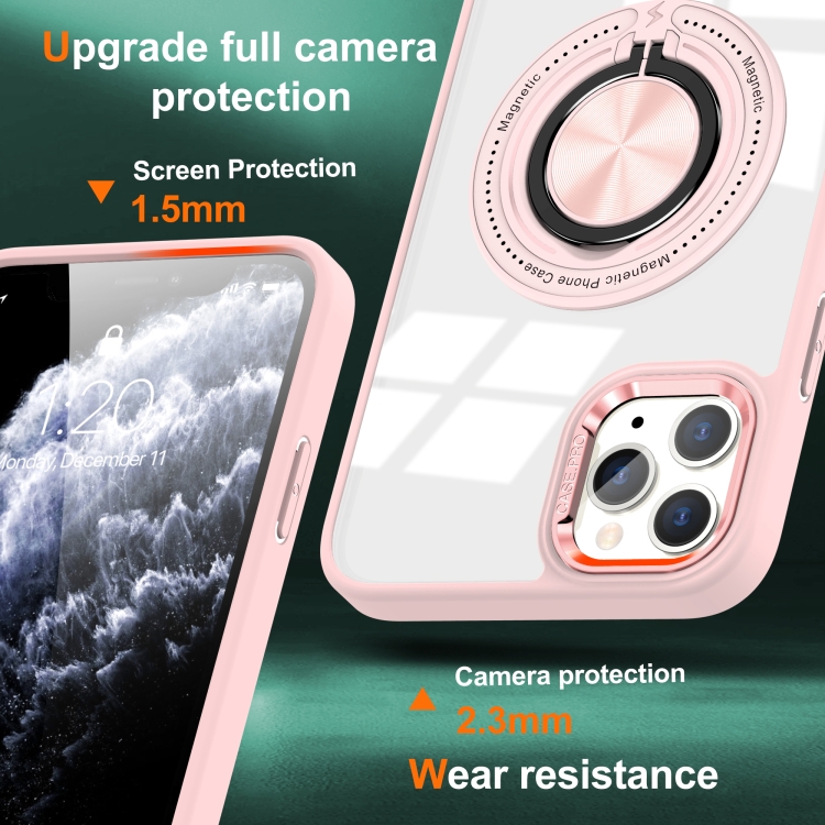 Funda para Teléfono iPhone 12 Pro Soporte Anillo Giratorio Magnético (Rosa)
