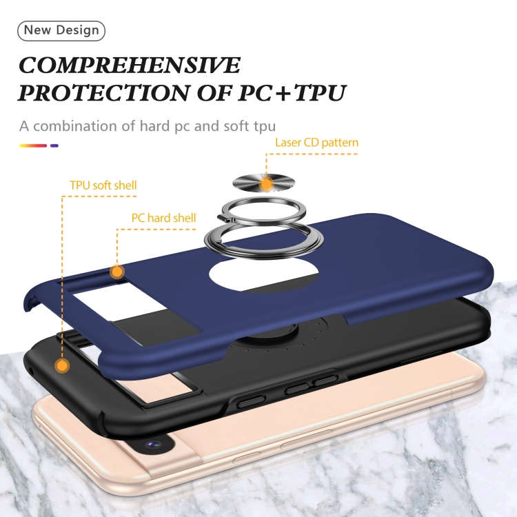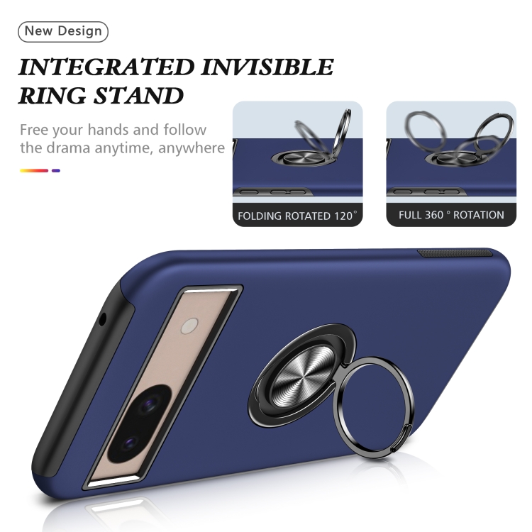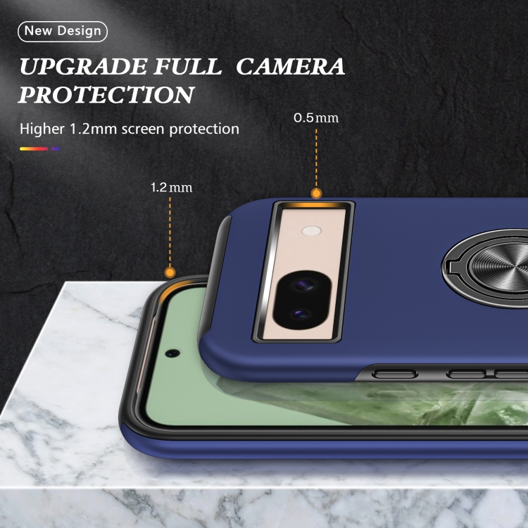 Funda para Teléfono Google Pixel 8A con Soporte Anillo Magnético TPU Híbrido (Azul Marino)
