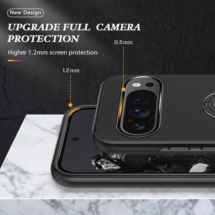Funda para Teléfono Google Pixel 9 Pro XL con Soporte Anillo Magnético Híbrido TPU PC (Negro)