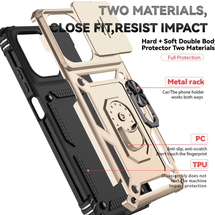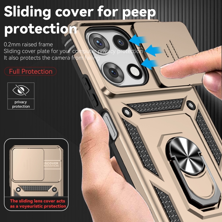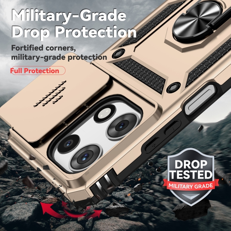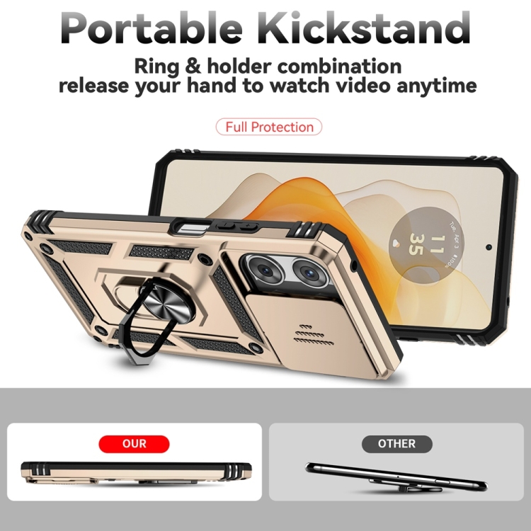 Funda para Teléfono Motorola Moto G 5G 2025 con Soporte Deslizante y Protector de Pantalla (Dorada)
