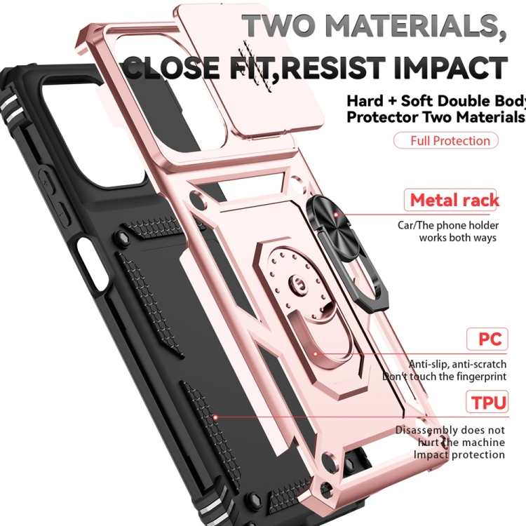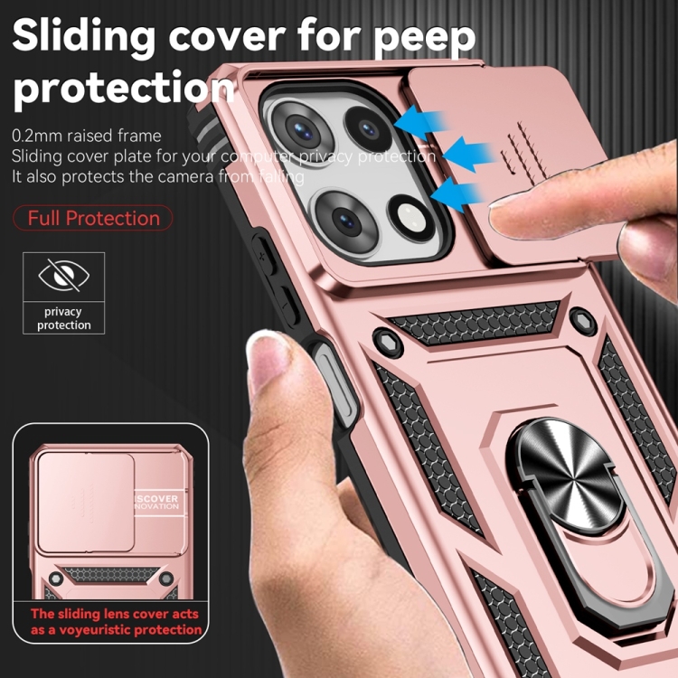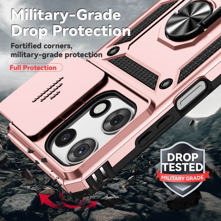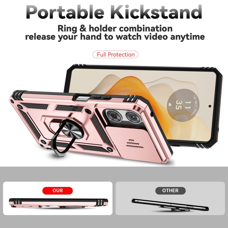 Funda para Teléfono Motorola Moto G 5G 2025 con Soporte Deslizante y Protector de Pantalla (Oro Rosa)