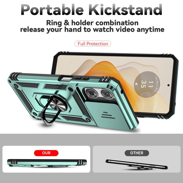 Funda para Teléfono Motorola Moto G 5G 2025 con Soporte Deslizante y Protector de Pantalla (Verde)