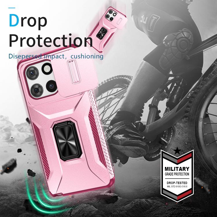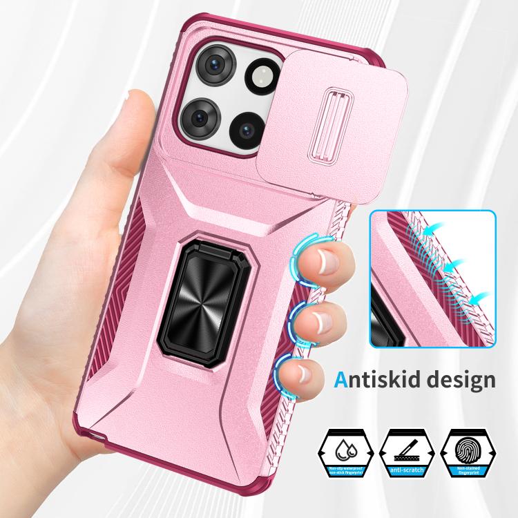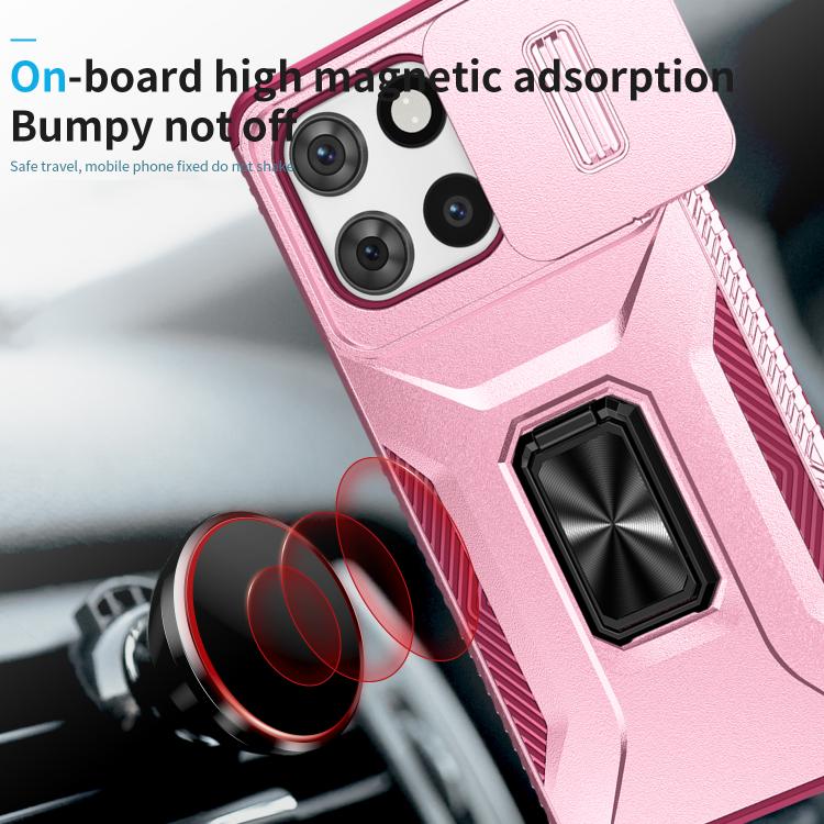 Funda para Teléfono Motorola Moto G Stylus 2025 con Soporte Deslizante y Protector de Pantalla (Rosa + Rojo Rosa)