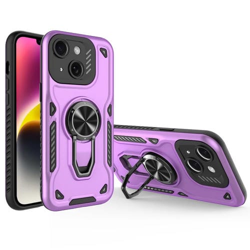 Funda para Teléfono iPhone 14 TPU PC con Soporte Giratorio de Metal (Morado)
