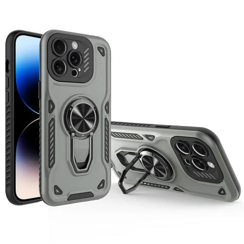 Funda para Teléfono iPhone 14 Pro Max Soporte Giratorio Metal TPU PC (Gris Carbono)