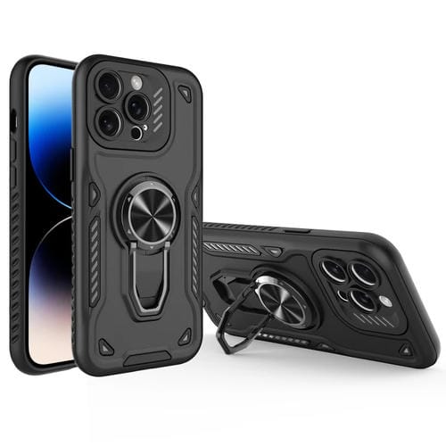 Funda para Teléfono iPhone 14 Pro Soporte Giratorio Metal TPU PC (Negro)
