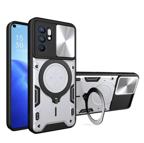 Funda para Teléfono con Soporte Magnético Deslizante con Textura de Cd para Oppo Reno 6 4G (Plateada)