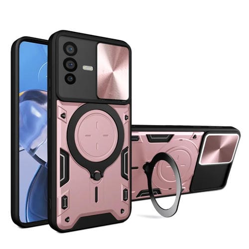 Funda para Teléfono con Soporte Magnético Deslizante con Textura de Cd para Vivo V23 5G/S12 5G (Rosa)