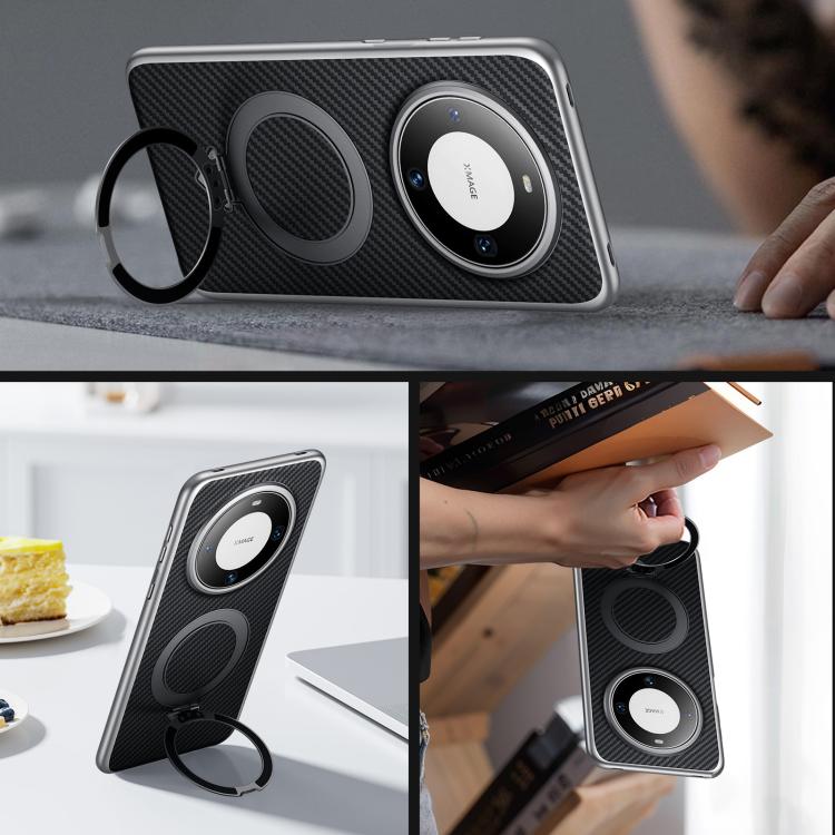 Funda para Teléfono Huawei Mate 60 con Soporte Magnético Magsafe y Textura Kevlar Sulada (Marrón)
