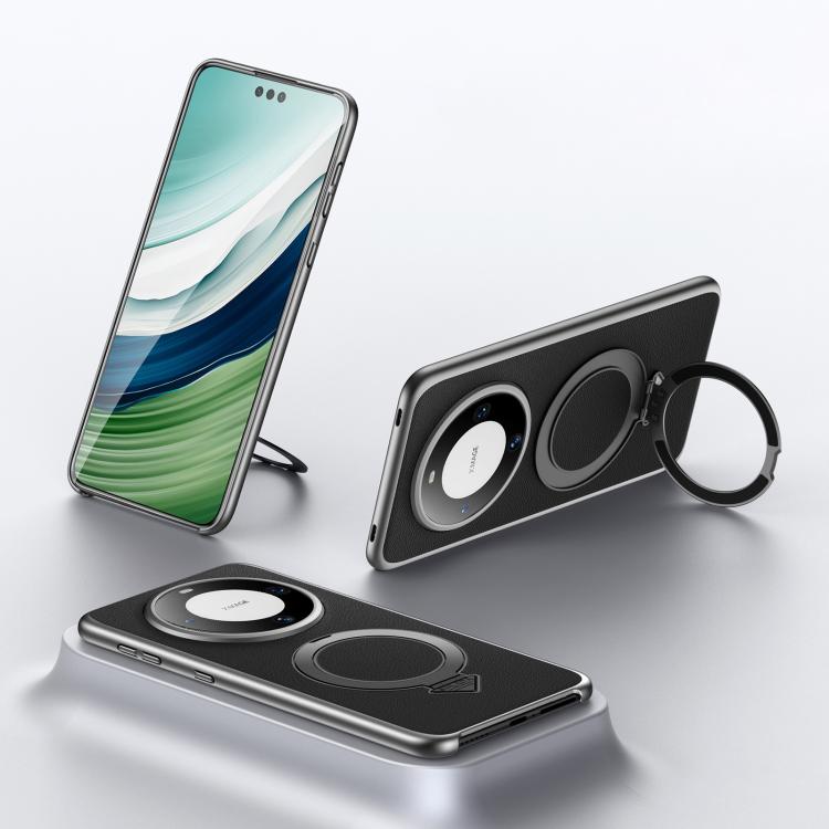Funda para Teléfono Huawei Mate 60 Pro con Soporte Magnético Magsafe de Cuero Sulada (Negro)