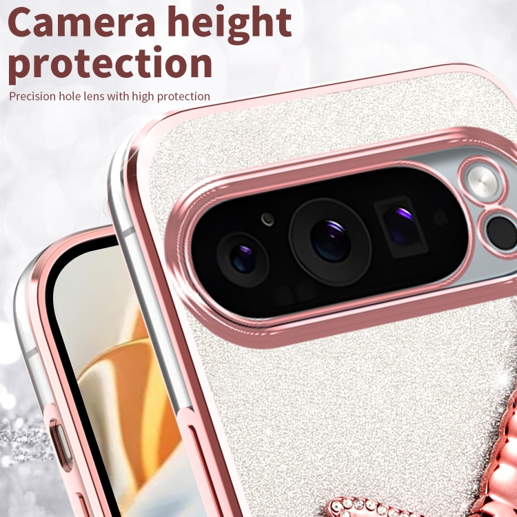 Funda para Teléfono Google Pixel 9 Pro XL con Soporte Libélula 3D y Purpurina Degradada (Azul)