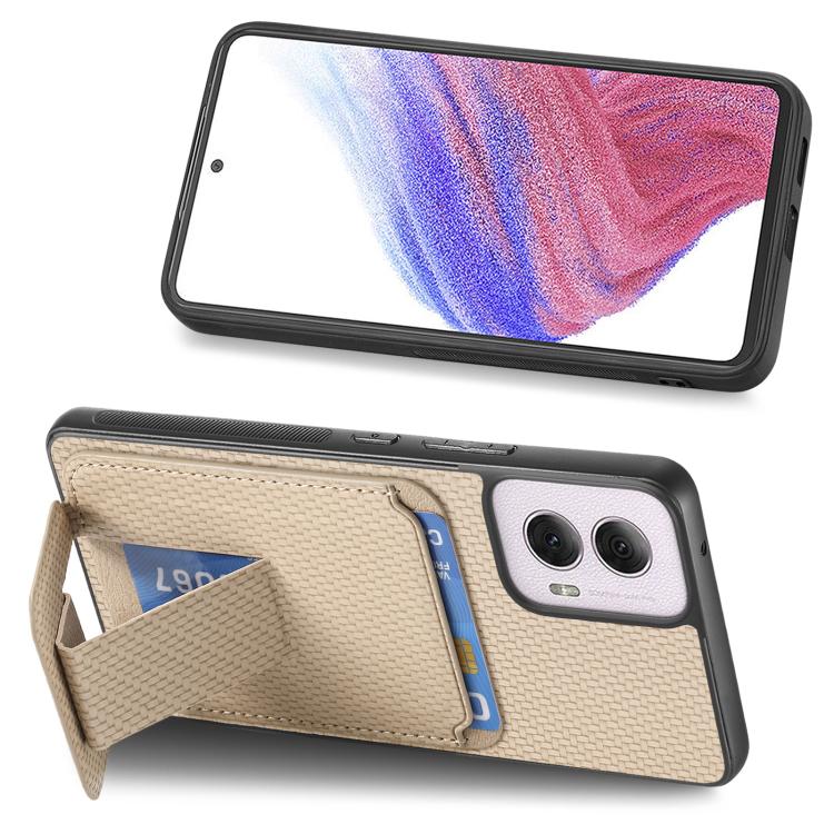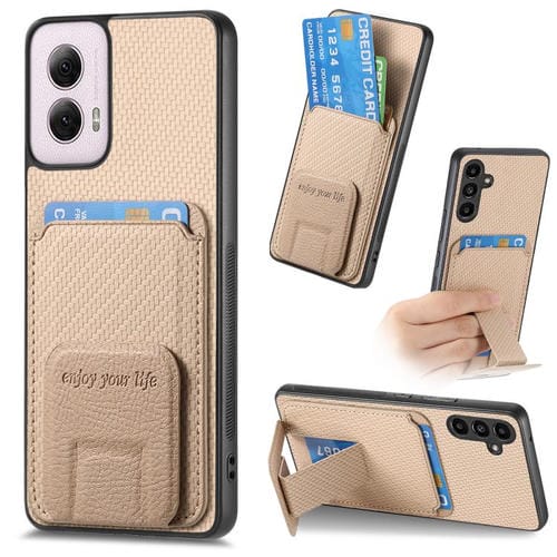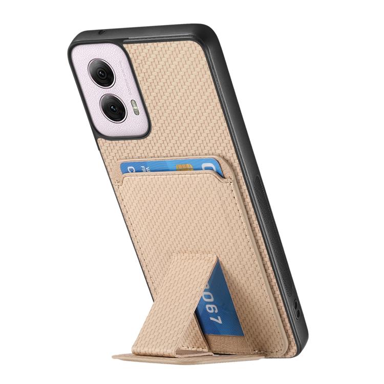 Funda para Teléfono Motorola Moto G Power 5G 2024 con Soporte Plegable y Tarjetero de Fibra de Carbono (Caqui)