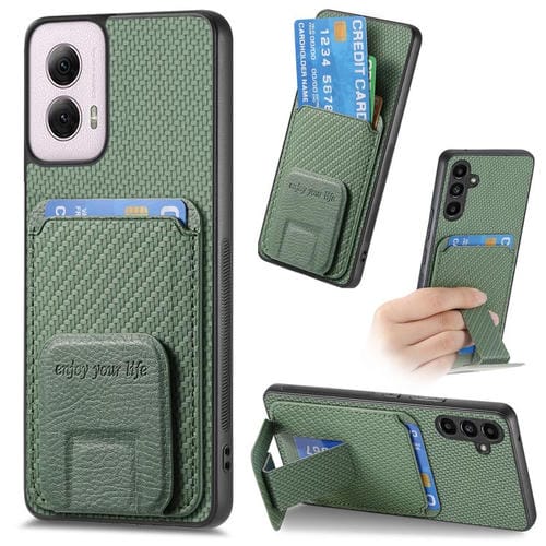 Funda para Teléfono Motorola Moto G Power 5G 2024 con Soporte Plegable y Tarjetero de Fibra de Carbono (Verde)