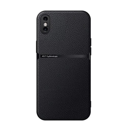 Funda para Teléfono iPhone Xs Max Cuero de Lichi Tapa Magnética a Prueba de Golpes (Negro)