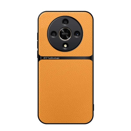 Funda para Teléfono Honor X9B con Tapa Magnética de Cuero de Lichi y Protección Total (Amarillo)