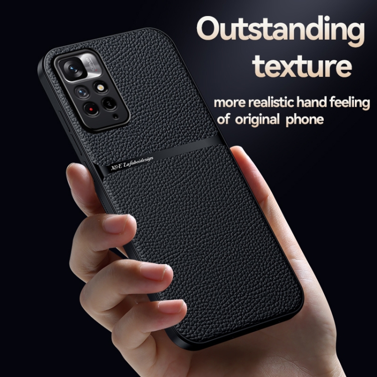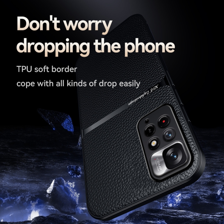 Funda para Teléfono con Tapa Magnética de Cuero Litchi con Protección Total a Prueba de Golpes para Redmi Note 11 Pro Global/Note 11E Pro 5G (Negro)