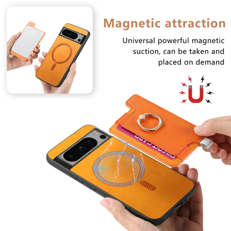 Funda para Teléfono Google Pixel 8 Pro con Tapa Trasera Magnética de PU Magsafe (Amarilla)